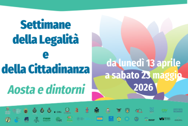 Da lunedì 13 aprile a sabato 23 maggio 2026 prenderanno vita le Settimane della legalità e della cittadinanza Aosta e dintorni, che porteranno nel capoluogo e nei territori vicini la realizzazione di attività laboratoriali, incontri tematici e forum su un ampio ventaglio di temi, in un percorso creato grazie a un forte lavoro di rete tra enti e associazioni.
