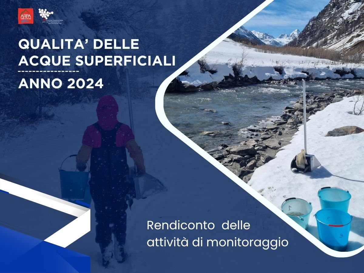 La rete di monitoraggio delle acque superficiali di ARPA Valle d’Aosta interessa 168 corpi idrici fluviali e 1 invaso artificale. I monitoraggi di tipo chimico, biologico e idromorfologico concorrono alla definizione dello stato di qualità dei corpi idrici.