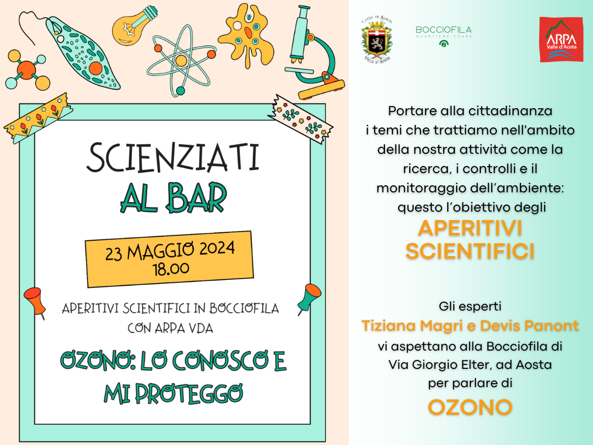 Portare alla cittadinanza i temi che trattiamo nell'ambito della nostra attività istituzionale, come la ricerca, i controlli e il monitoraggio dell'ambiente: questo l'obiettivo degli aperitivi scientifici promossi in collaborazione con la Bocciofila del Quartiere Cogne di Aosta, nell'ambito della rassegna "Scienziati al Bar".